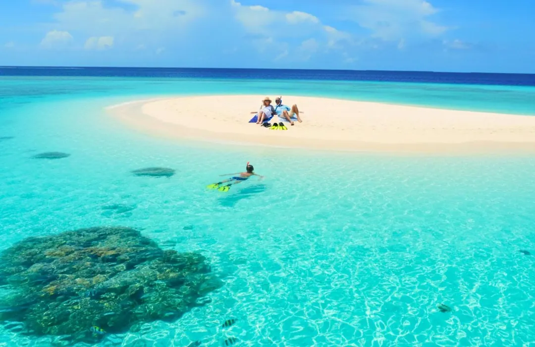 The quiet garden at Bougain Villa Gemanafushi hotel features a balcony.
